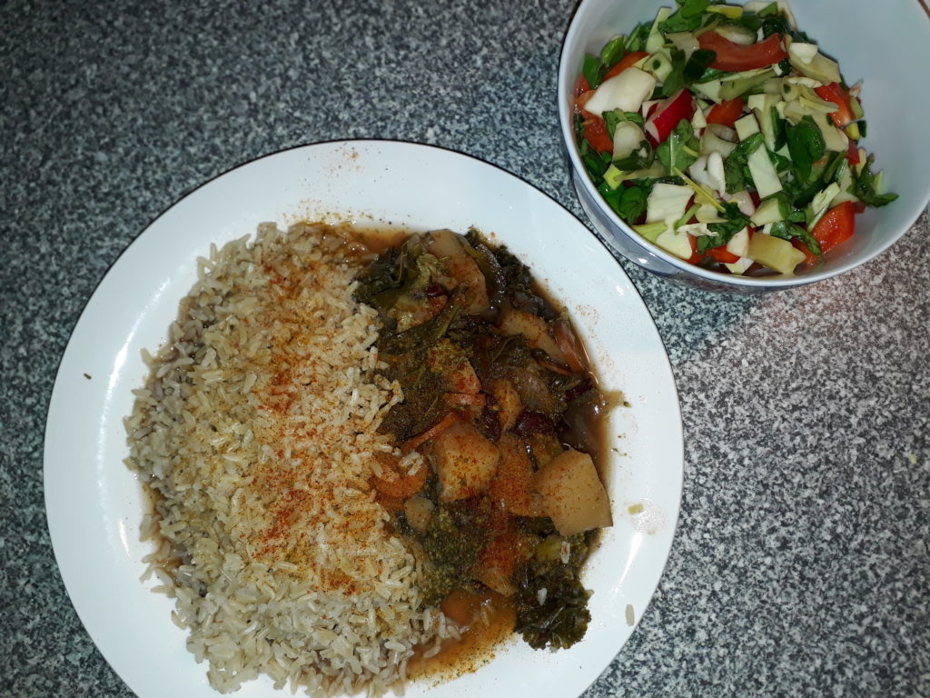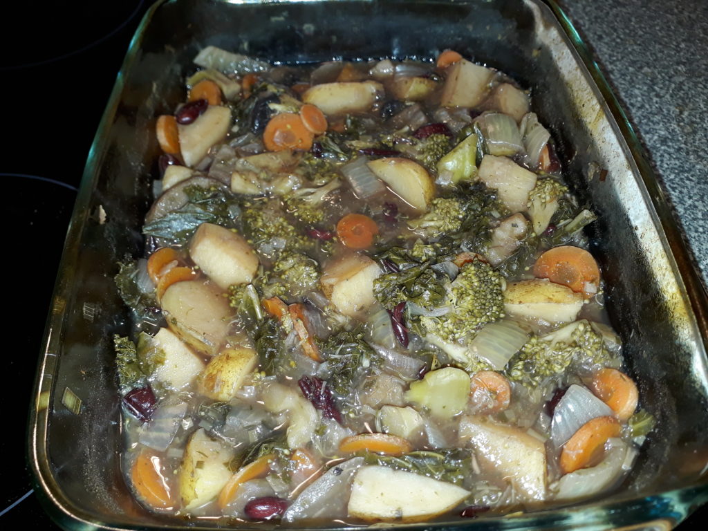 Tein pikasesti vain tämmöisen: AineksetLaatikkoonJaUuniin. Kasvislientä joukkoon ja mausteet perään.