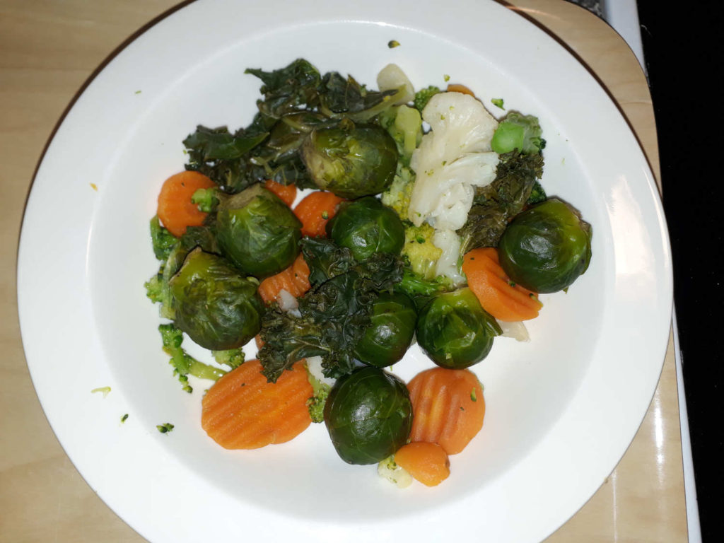Aika monipuolinen setti, ja tuosta saa sen tärkkelyksen lisäksi kaikkia niitä muitakin hyviä aineksia terveytensä puolesta taistelemaan. Sehän on sivuseikka, että se ruoka lisäksi maistui aivan helvetin hyvältä! Ja tämän kertaisen aterian valmistamiseen meni sen aikaa kun nuo vihannekset höyrystettiin, eli se 7 minuuttia piti katsoa telkkaria odotellessa. Muut mikrotettiin, ja… Salaattiahan on aina jääkaapissa™. Ettei tässä puskettu koko päivä hikeä hellan ääressä tämänkään aterian eteen.