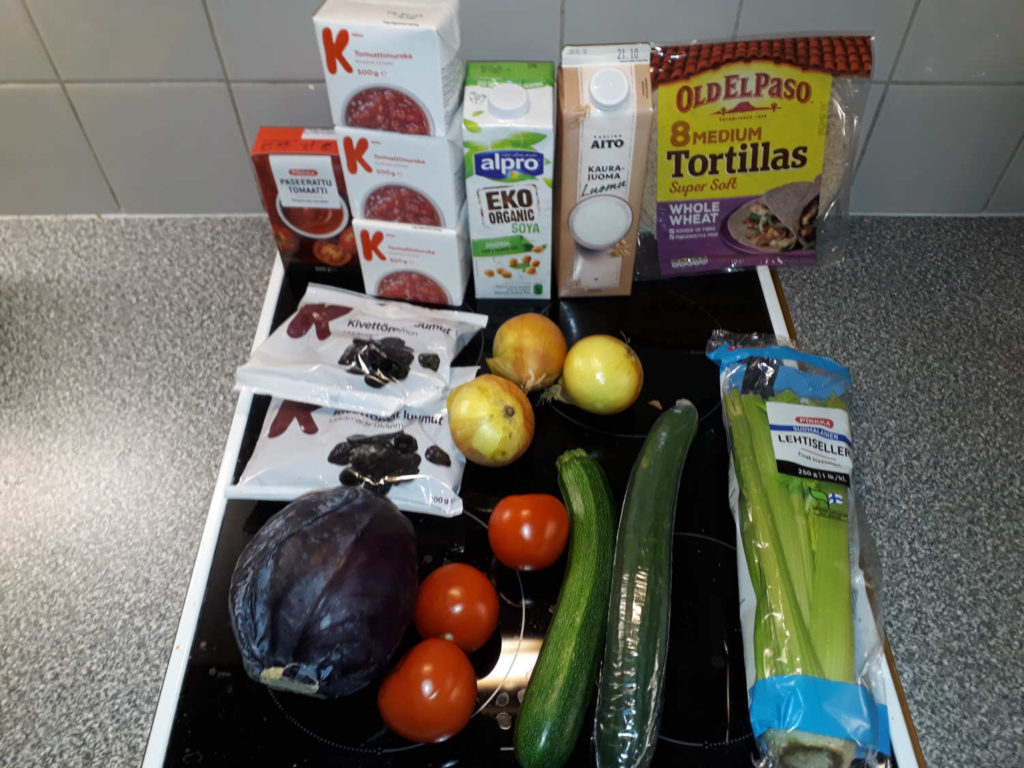 Kolmen ruokalajin kokkaus pitäisi suorittaa, muttei kerkeä tehdä välttämättä tänään kun on muuta ohjelmaa, ainakaan sen lisäksi että vielä sinne kauppaankin pitäisi ensin keretä. Että tortillaa ja leipää taas koko päivä, niinkö?