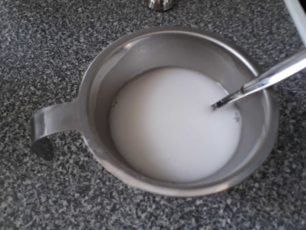 3 rkl perunajauhoja vajavaan cupilliseen kylmää vettä ja sekoitus