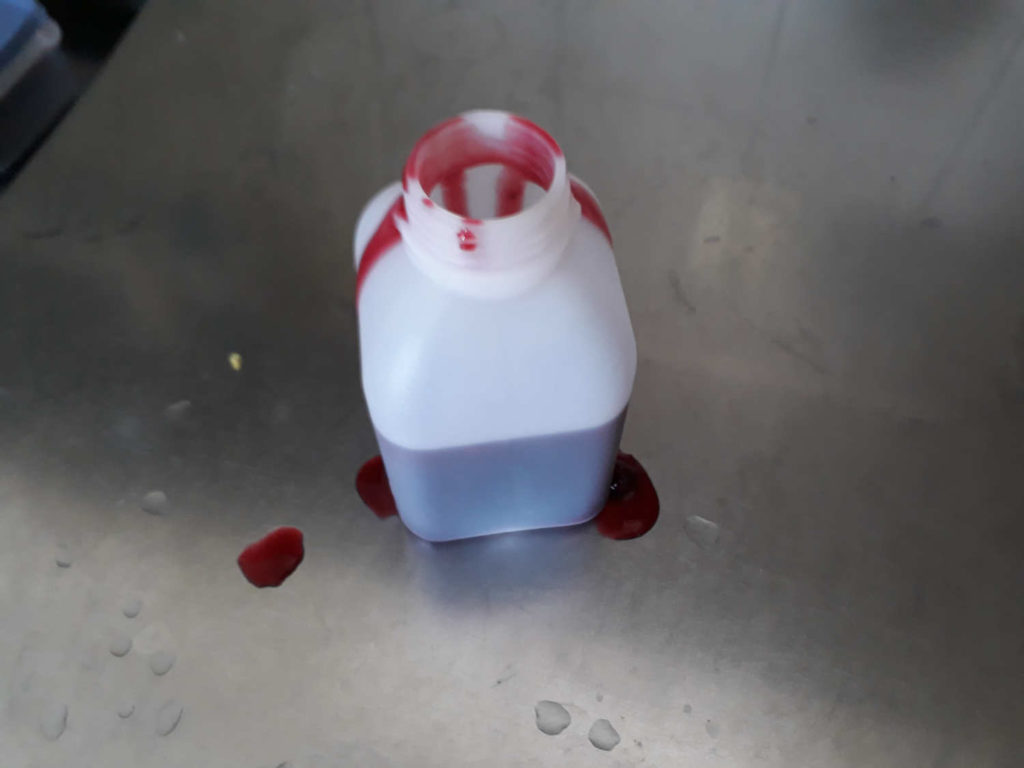 Tuosta tuli keskikokoinen pakasterasia täyteen, ja sitten lisäksi tämmöinen pakastuspullollinen puolilleen. Ei ole sellaista (t)rattia, joten oli vaikeaa saada sitä soppaa kattilasta tänne pulloon, ja meni tietenkin räpimiseksi.