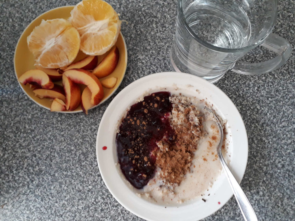 Mutta nyt on jo ikävä aamupuuroa. Appelsiinia, nektariinia, 3-marjan kiisseliä, kanelia, kasvimaitoa, 4-viljan puuroa tai kaurapuuroa, pellavasiemenrouhetta…. No tämä viiminen ei niin kauhean hyvän makuista ole että sitä sen takia kaipaisi, mutta ravintoaineena sitä kaipaa kuitenkin kun tietää mitä kaikkea siitä on hyötyä. Päälle kofeiini kahvit: