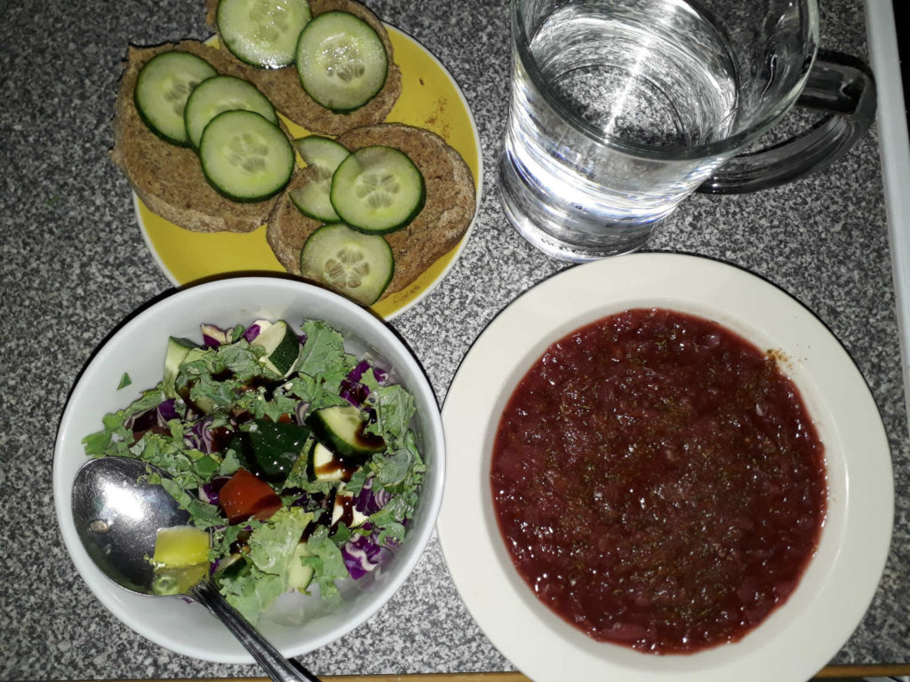Värkkäsin musiikkia maha täynnä, eikä tullut mieleenkään ettei jääkaapissa ole mitään ruokaa tämän aamupuuron jälkeen valmiina, paitsi sitten kun oli jo nälkä. Onneksi pakastin pelasti, siellä oli pari annosta vielä äitin borssikeittoa, ei tarvinnut kuin lämmitellä. Ja tietenkin leipää on vielä.