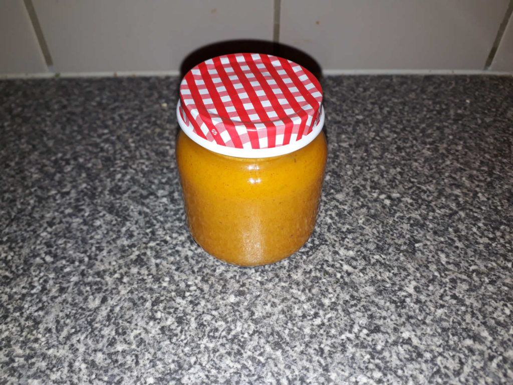 Keittiössä häärätessä tein myös pikaisesti sinappia taas pikku putelin täyteen. Tällä kertaa laitoin sokeria vain 1/3 dl, kun viimeksi sitä meni 1 dl. Muuten melkeinpä sama resepti kuin viimeksi, mutta mausteina sitten oreganoa ja tulista chilijauhetta. Tässä yrittää hakea parempaa reseptiä testailemalla, viimeksi oli aivan liikaa sokeria. Eri makuja myös kokeiluun.
