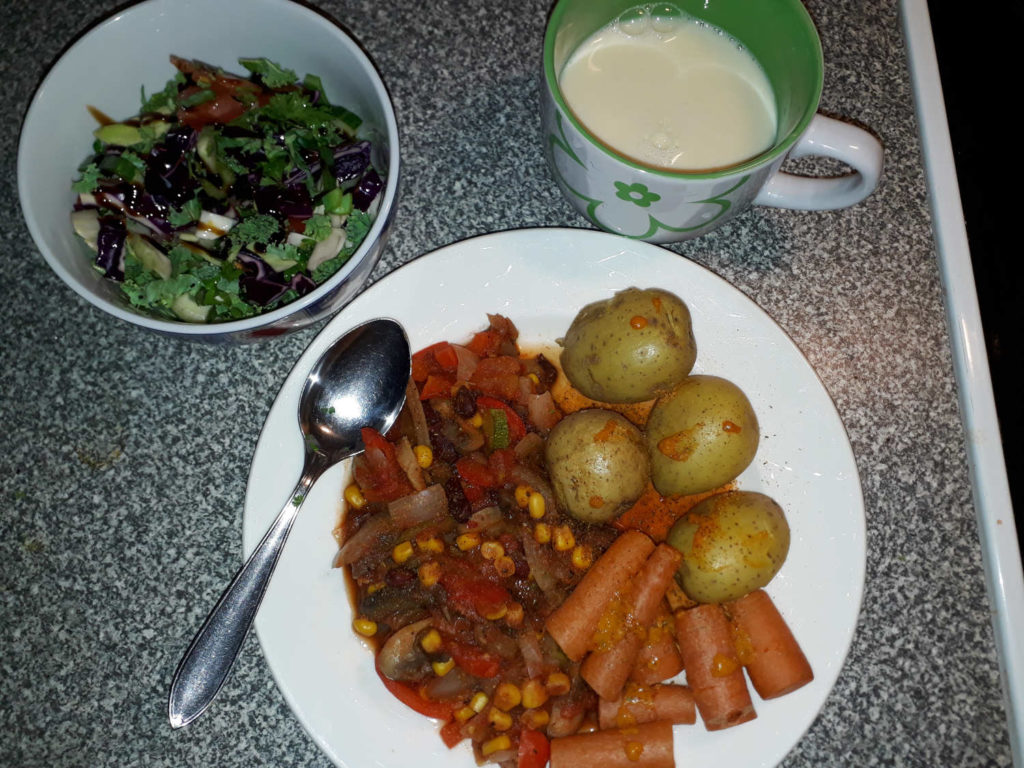 Tuli yöllä valvottua eikä leivät riittäneet vielä unille asti. Vielä piti kerran syödä. Mahtavaa ruokaa. Porkkanat maistuu porkkanalta ja perunat perunalta, ja tulista kaikkia keskellä.