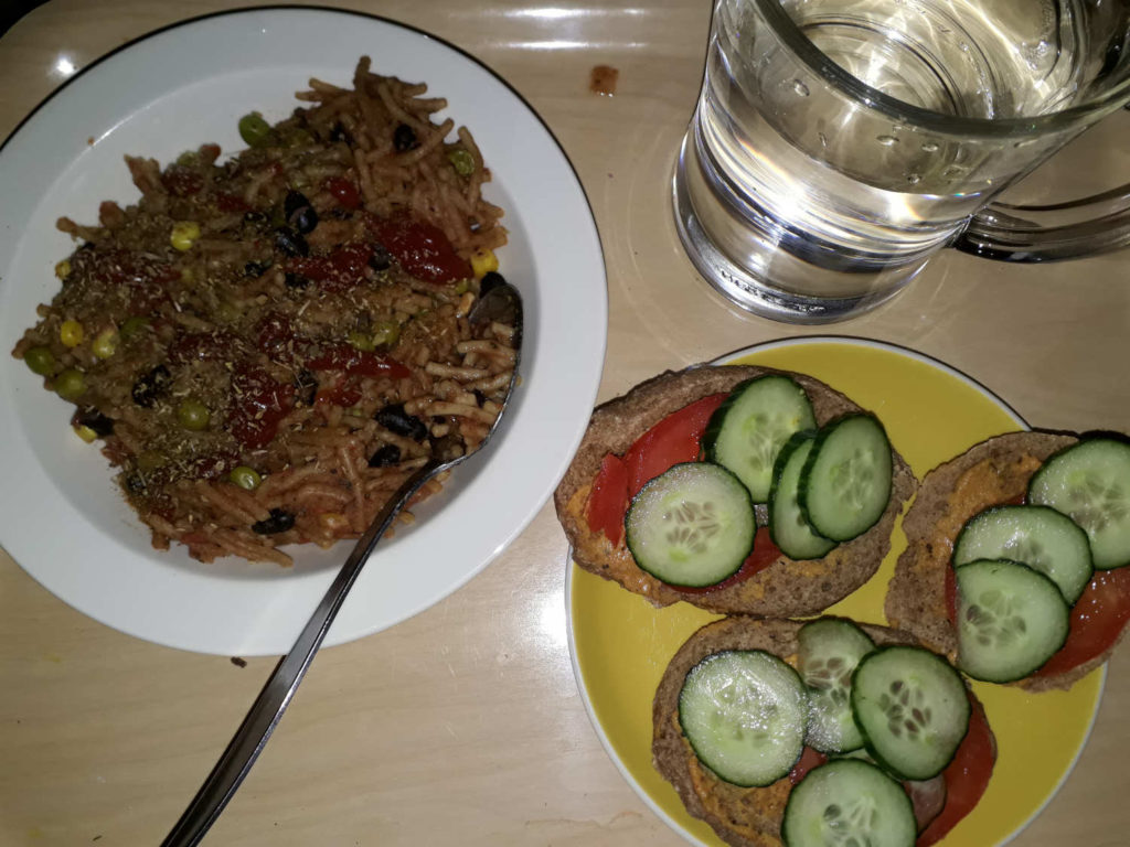 Iltapalaksi jysäys, ja oli ihan hyvää. Jotenkin sellaista ruokaa vähän mitä ennenkin syönyt, ennen tätä WHPB. Nyt tosin vain ilman niitä kaikkia täysin ylimääräisiä ainesosia, joiden takia lihoo ja voi huonosti, vaikka niitä söisi kuinka terveellisesti. Ja uutta parempaa makua tilalle.