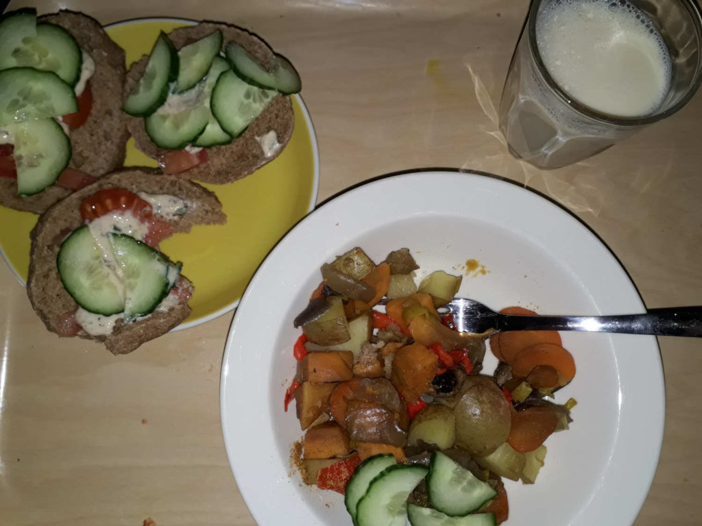 Jostakin syystä nuissa juureksissa, jos pelkästään syö sitten niitä, niin se seuraava nälkä on aivan älytön. Aivan pelkäksi ateriaksi siitä ei minun mielestä ole, ainakaan kovin moneksi tunniksi, mutta lisukkeeena toimii. Ei uskalla iltapalaksi syödä pelkästään juureksia, ellei ole varma että saa heti nukuttua. Vähän jotakin kaveriksi: