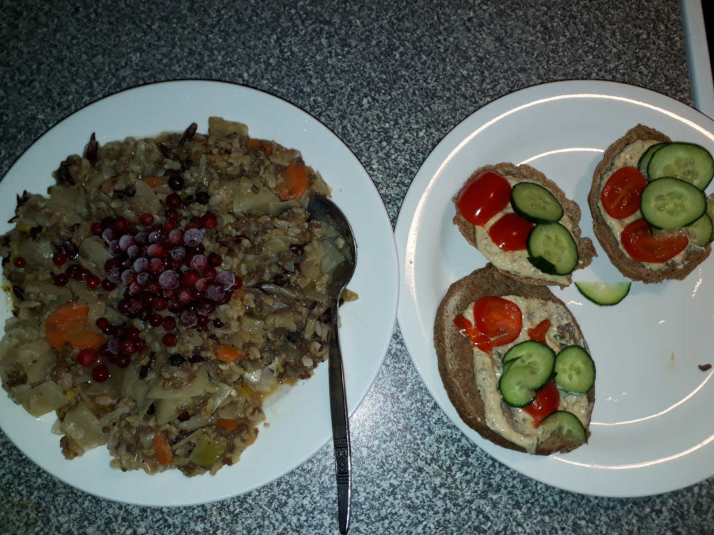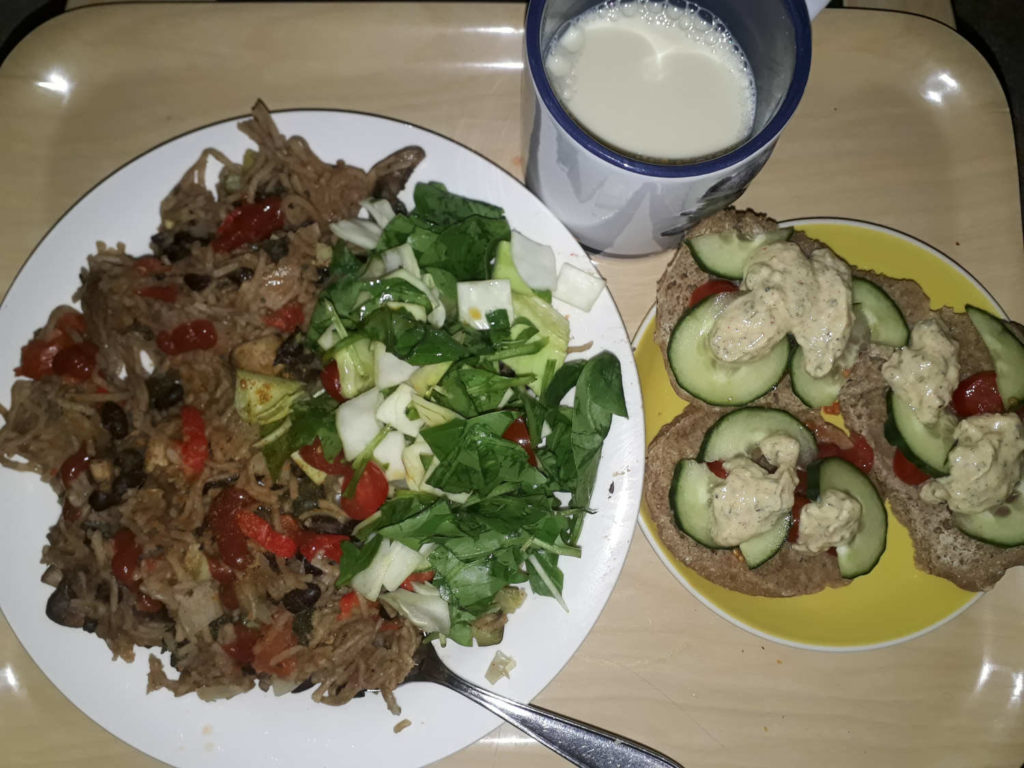 Lautasella voi sitten vähän jytistä joskus jotakin soijavalmisteesta värkättyä “jugurttikastiketta” pari teelusikallista(kauhallista), ja muuta kivaa, mutta itse ruokaan ei semmoisia aivan kauheita maustamisia enää tarvitse valmistaessa.