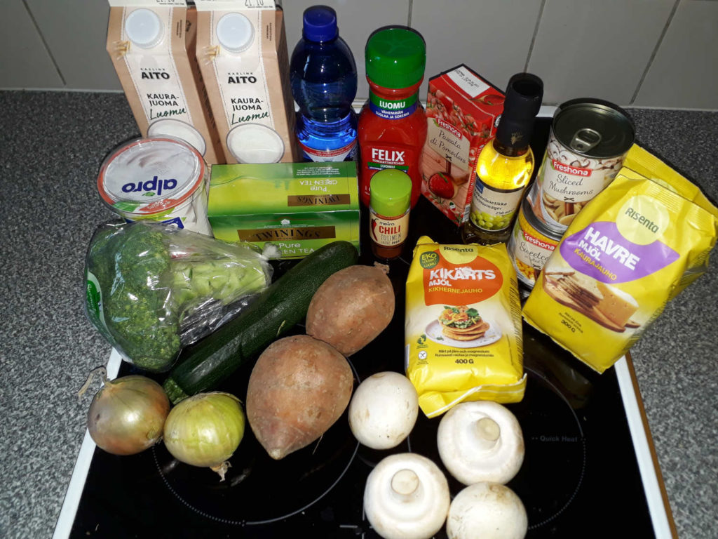 Löyty taas kolme ruokaa, joihin ei tarvinnut ostaa juurikaan mitään. Siellä oli kyllä vähän monimutkaisempia juttuja, eli ensin pitää tehdä joku “vege-majoneesi”, jota käytetään sitten yhdessä kastikereseptissä, ja sitä kastiketta on tarkoitus sitten lisätä johonkin ruokaan, ja sekin pitää valmistaa. Tavallaan kolme reseptiä seikkailee keskenään yhtä ruokaa kohti, mutta yritetään nyt opetella jotakin vaikeampaakin, kun vielä on mielenkiintoa koko asiaan.
