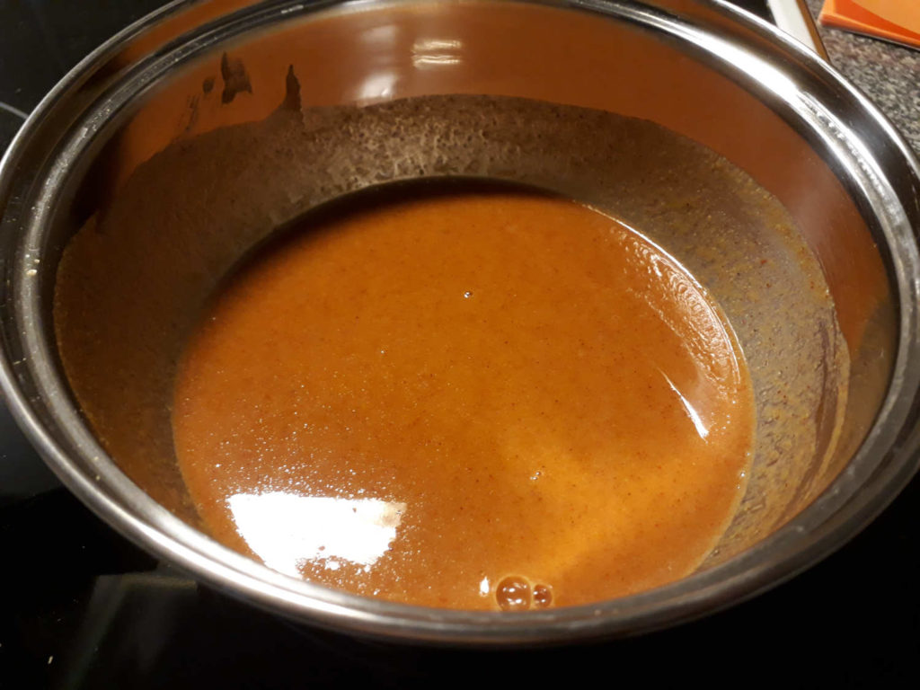 Sen jälkeen sinapin voi antaa jäähtyä vaikka vähän aikaa, ja pian seuraavaksi lisätään ja sotketaan sinne se etikka. Sitä voi maistella että koska on sopivasti, mutta täällä kyllä lähti suusta makuaisti ensimmäisen maistamisen jälkeen, sen verran oli tulisuutta, niin kuin pitää ollakin, joten siellä on nyt tuo reseptissä mainittu määrä sitä etikkaa.