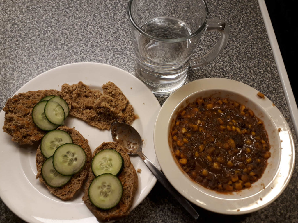 Nälkä tuli jo. Sämpylöiden päälle vähän sinappia ja sitten keitot: