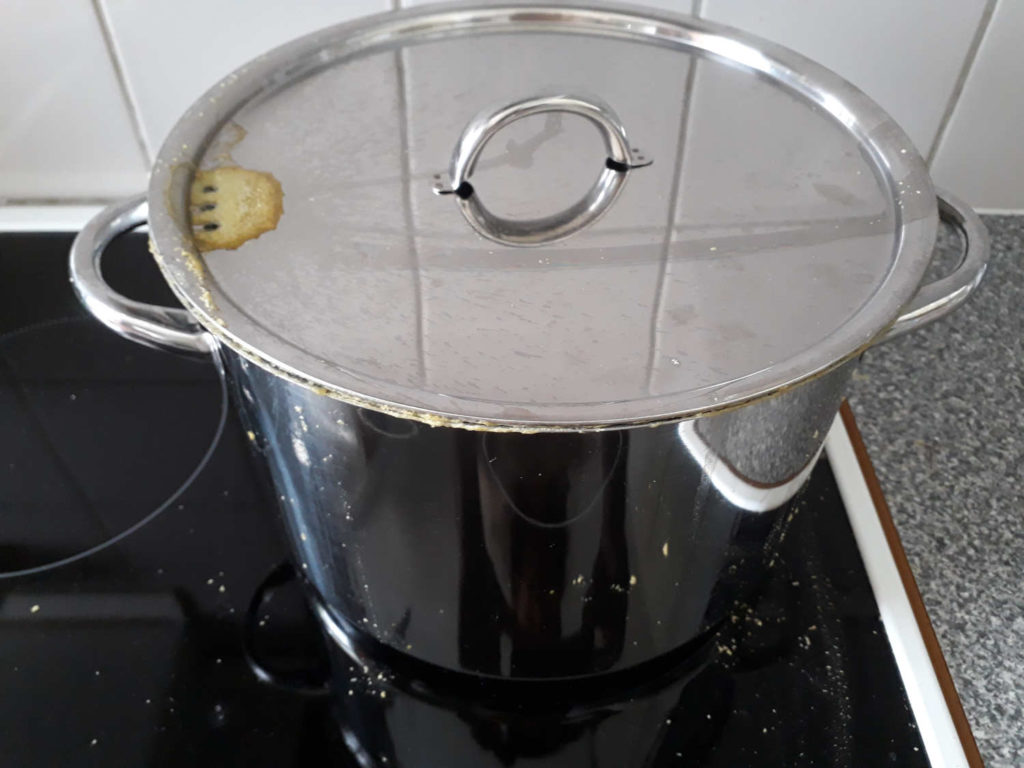Ei perkeleen perkele se on valunut kannen välistä yli ja palanut hellaan kiinni ja kaikki näkyy menevän sitten ihan kunnolla päin persettä.